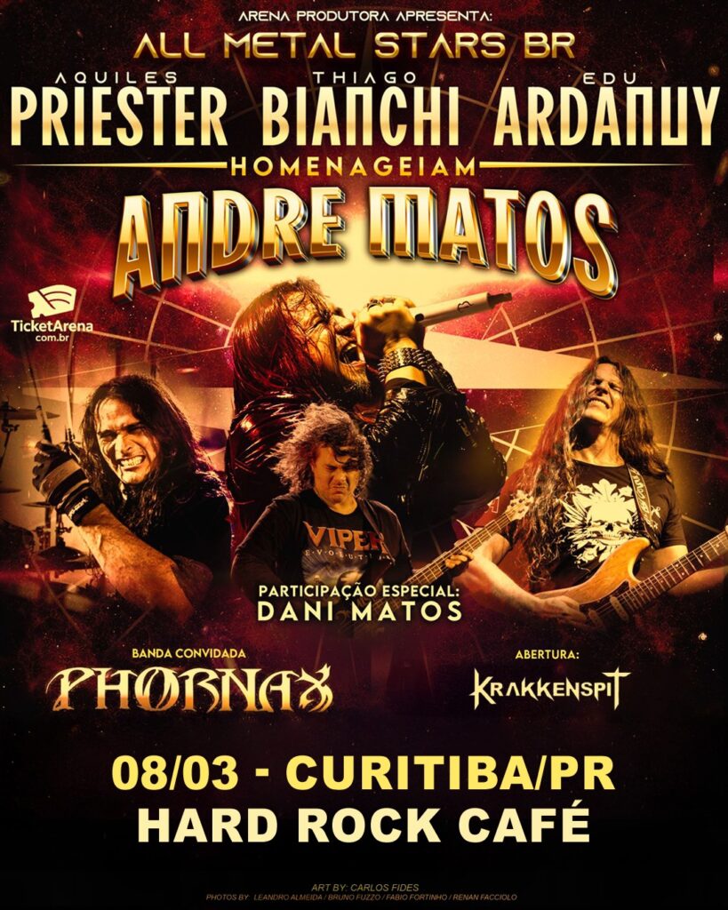 Março de 2026 marcará um momento memorável para o Heavy Metal Nacional. A inédita turnê “All Metal Stars BR” reunirá três gigantes da cena brasileira, Aquiles Priester, Thiago Bianchi e Edu Ardanuy, para homenagear o legado de Andre Matos, um dos maiores vocalistas da história da música pesada mundial.