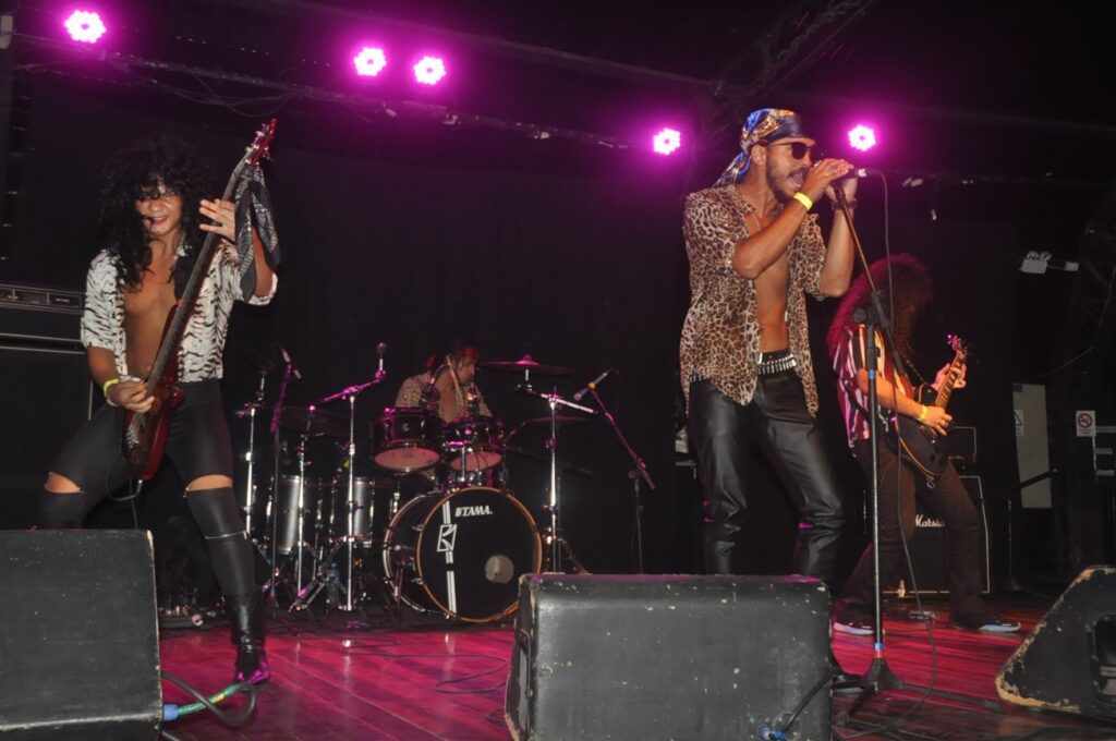 Abrindo, com um certo atraso, veio o quarteto carioca, Cidade Nua, com um visual mesclado de Glam Metal com bandas de heavy metal dos anos 80. Em nada tem o som com a nova yorkina Naked City (tradução de Cidade Nua) dos anos 80. Fundada por Pedro Casanova (Voz) e Valentim Danillo (Voz&guitarra), tem a participação de Diego Goettenauer (baixo) e Fernando Júnior (bateria). São jovens, da baixada fluminense que fundaram a banda em 2016 e tem um som de hard rock muito bem executado, que me remeteu aos anos 80 com um visual da banda carioca hard do estilo “farofa”, Broken Heart, que contava com o ex-baterista do Explicit Hate (banda de Thrash Metal carioca), Rod Santoro, mas com um som distinto dessa banda da baixada. Determinados momentos, o vocal foi do guitarrista, que agitava como em outrora fazia o simpático Eddie Van Halen (RIP), sem a mesma técnica comparativa como é de se esperar do mago que se foi e era ponto fora da curva, mas em termos visual, tamanha referência ao magnífico período dos anos 80. Uma banda a ser explorada num estilo que hoje parece pouco apreciado, mas que tem um público fiel e mais feminino pelo som e sex appeal dos componentes. Vale escutar seu trabalho autoral bem executado!