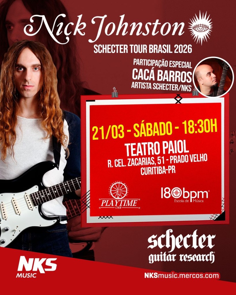 No dia 21 de março, o guitarrista canadense Nick Johnston, atualmente no Mastodon, vem a Curitiba para a realização de um workshow, apresentação única e intimista que promete proporcionar uma visão rara de seu processo criativo. A apresentação, que ainda conta com a participação especial do guitarrista Cacá Barros, está marcada para o palco do Teatro Paiol e será realizada pela parceria entre a Escola de Música 180BPM e a loja de música Playtime CWB.